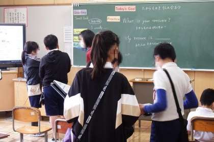 「私の宝物は・・・・」英語で自分の宝物を伝え合う学習を行いました。「What is your treasure?」「My treasure is 〜」みんな大切な宝物を持っているのですね。