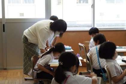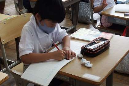 算数のノートの使い方も授業と同時に進めています。毎時間めあてがあるので、ノートに丁寧にめあてを書きます。めあては、定規で四角に囲って・・・。