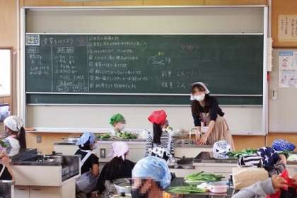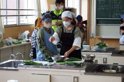 家庭科で「青菜をゆでよう」を学習しました。作業を交代制にして密にならないように配慮しながら、青菜をゆでていきます。おいしい青菜ができたでしょうか。
