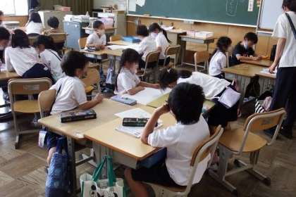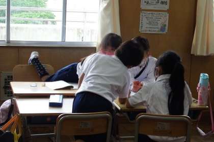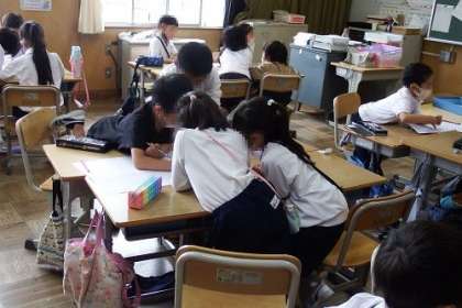 国語「ことばあそび」の学習で、「しりとりゲーム」を行いました。班ごとにチャレンジです。子どもたちの笑顔があふれる楽しい時間でした。