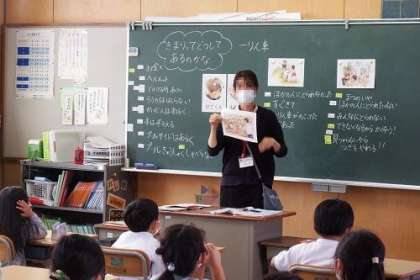 道徳の学習で、約束やきまりを守り、みんなが使う物を大切にすることを考えました。資料は、「一りん車」です。大好きな一輪車を使えるようにするために、主人公がとった方法は・・・。