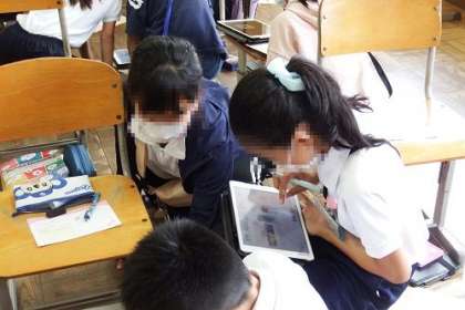 英語の学習で「バースデーカードを作ろう」に取り組みました。自分の名前や相手の名前、相手の誕生日、相手へのメッセージなどを書き込んで作成しています。どんなカードができあがるかな。