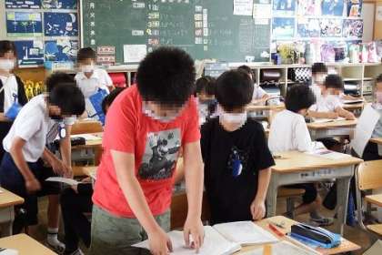 算数「1億をこえる数」の学習が進んでいます。この日は、2けたの数をかける筆算をもとにして、大きな数の筆算を学習しました。3けたや4けたの数の筆算にチャレンジです。