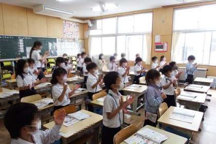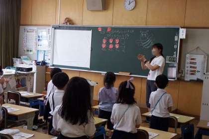 音楽ので「ぶんぶんぶん」の学習に取り組みました。「ぶんぶんぶん はちがとぶ」のリズムにあわせて手拍子をとります。この日は、タンとタのリズムの違いを感じることを学習しました。