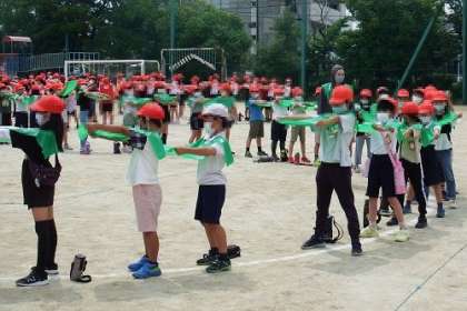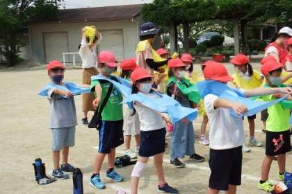 今日は、雨のために延び延びになっていた航空写真の撮影を行うことができました。みんな、飛行機に興味深々。飛行機が西の方から現れ、視線は上空へ。飛行機が運動場の上にやってきて、3回旋回しました。最後に、飛行機へ手を振りました。写真が現像され、見られる時が待ち遠しいです。