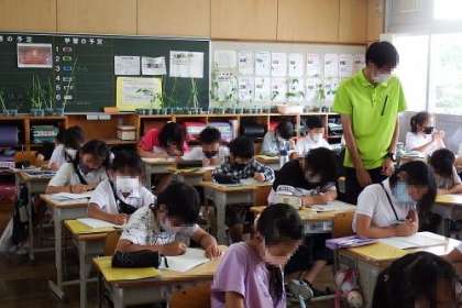 算数「小数のわり算」で、商を概数で表すことに取り組みました。「四捨五入で10分の1の位まで概数で表しましょう」という時は、100分の1の位を四捨五入します。