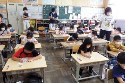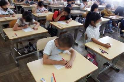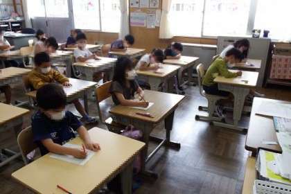 資料「わりこみ」を使い、道徳の授業を行いました。公園にある大きなすべり台は人気で行列ができています。そこにわりこむ友達。このことをきっかけに、よいことと悪いことの区別をし、よいと思うことを進んで行うことを話し合いました。