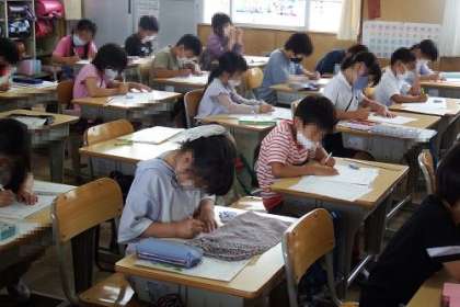 気温があがり、雨も降り、野菜もぐんぐん成長し、実をつけ始めています。子どもたちは観察記録を継続しています。夏休みまで、あと1か月。どこまで成長するでしょうか。