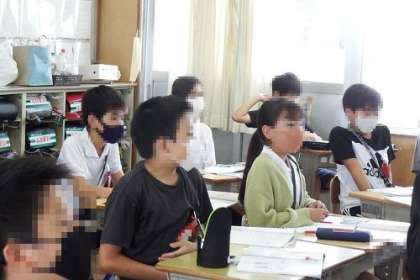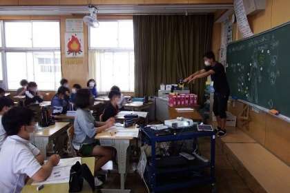 写真は、理科「体のつくりとはたらき」の様子です。この日は、血液のながれを調べました。自分の体の中で起こっていることです。みんなとても興味深いようでした。