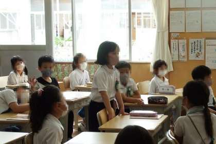 道徳で資料「ありがとうって言われたよ」を使い、親切や思いやりについて考えました。身近にいる人に温かい心で接し、親切にすることを話し合いました。