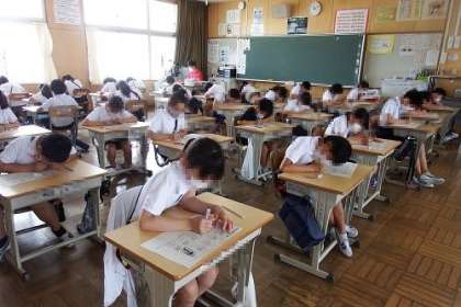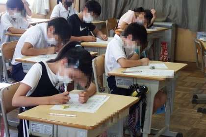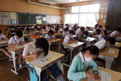 写真は、5年生の月例テストの様子です。今月学習した内容が定着しているかどうかを確認するテストです。できなかったところは、しっかりと復習していきましょう。
