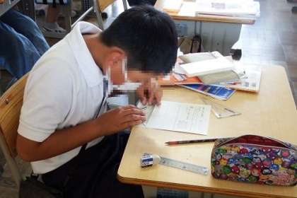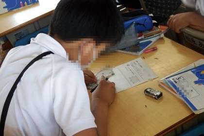 算数の学習で、三角定規を使って、四角形をかく学習に取り組みました。前の時間に学習した垂直や平行の書き方を使って、かいていきます。