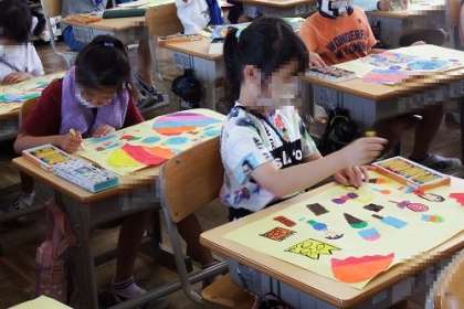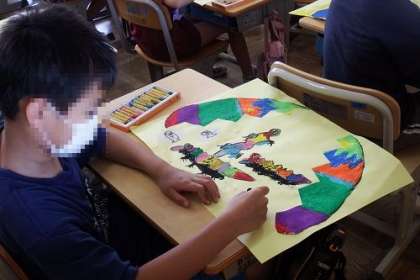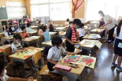 図工「ふしぎなたまご」の学習です。たまごの中から飛び出すものが決まり、絵ができ上りました。びっくりするものが、飛び出してきます。