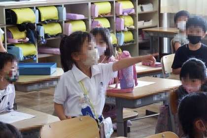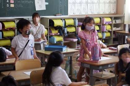 生活科で育てているアサガオ。その様子を、お家の人によく分かるように見学カードへまとめる活動を国語で行っています。見たり、触ったり、においを感じたり、五感を使って表現します。