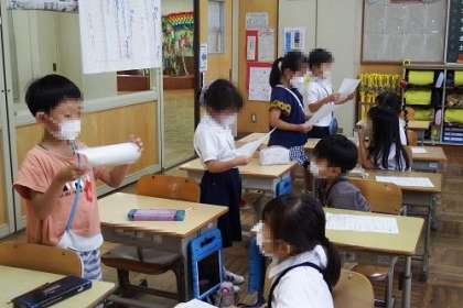 国語で、「アサガオの成長をお家の方によく分かるように伝える」学習に取り組んでいます。見る、においをかぐ、さわる、感じる以外に、重ね言葉やたとえなども入れられるか考えました。