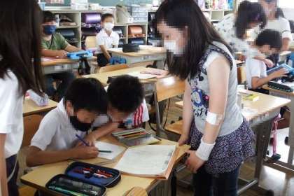国語で「ことわざや故事成語ブック」作りに挑戦しています。辞典で調べた言葉をプリントに書き込み、プリントの枚数が増えていくのがとても楽しみです。学習の重みを感じます。