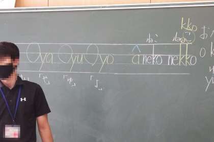 ローマ字の学習の様子です。この日は、小さい「っ」をローマ字ではどのように表すかを学習しました。子音を2回続けることを知り、練習を繰り返しました。