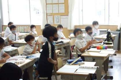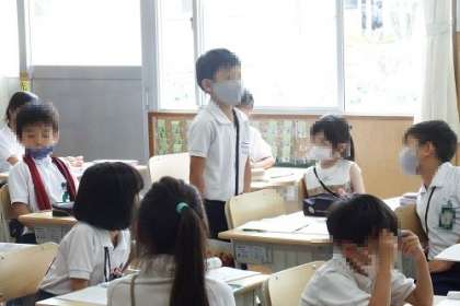 算数「100をこえる数」の学習で、100円玉をつかって、計算の仕方を考えました。「200円のふでと400円の絵の具を買うと何円になりますか」100円玉が6こで600円になります。