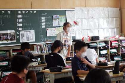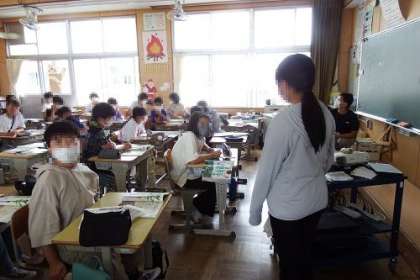 理科「植物の成長と水の関わり」の学習で、「根からとりいれた水は、植物の体のどこを通って、体全体にいきわたるのか」みんなで話し合いました。植物には水の通り道があり、これを使って水は体のすみずみまでいきわたることが分かりました。