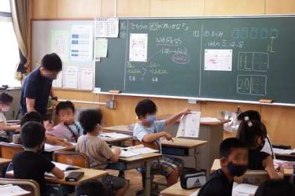 2年生は、各クラス「かさ」の学習に入りました。かさを比較するためには、統一の単位が必要です。そこで、リットルを学んでいきます。