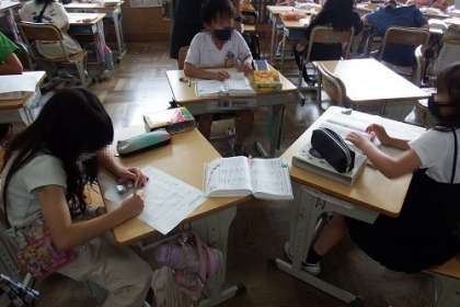 国語「慣用句を使おう」の学習に取り組みました。「ねこの手もかりたい」「道草を食う」「馬が合う」などの慣用句を、辞書を使って調べました。日本語の面白さを感じました。