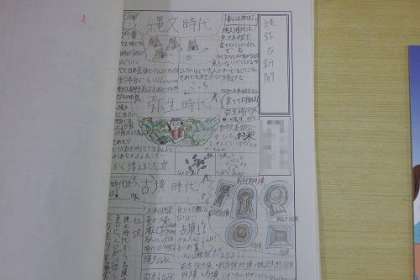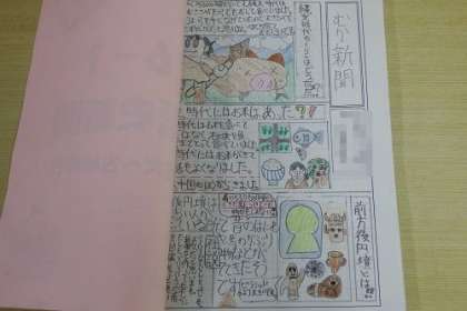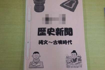 社会科で学習した縄文〜古墳時代を、各自歴史新聞にまとめました。クラス分が完成し、展示してあります。中を見ると、力作がいっぱい。イラストも入れながら分かりやすくまとめました。