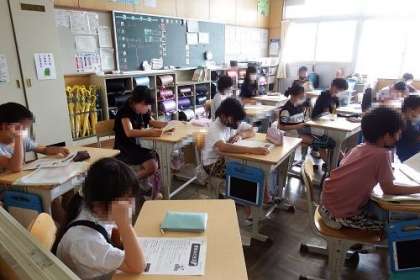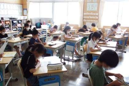 写真は、7月20日の様子です。夏休みのしおりなどを使っての準備。今日からの夏休みを健康安全に過ごし、楽しんでくださいね。