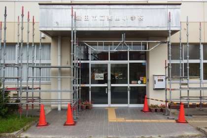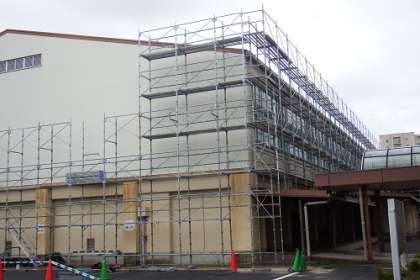 校舎と合わせ、体育館の足場設置も進んでいます。