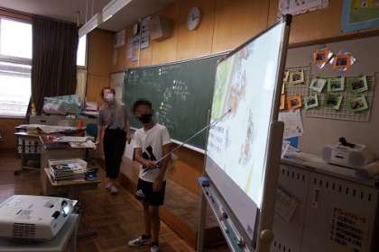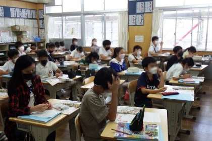 写真は、社会科で平安時代を学習してる様子です。貴族の生活を、貴族の屋敷の絵から読み取っていきます。藤原氏の摂関政治も登場します。