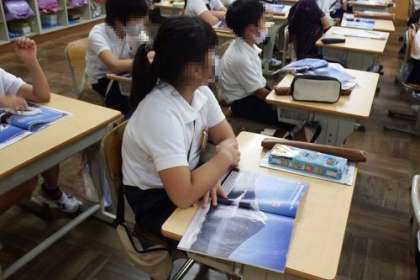 「頭を雲の上に出し 四方の山を見下ろして・・・」音楽でこころのうた「ふじ山」の学習をしました。曲の山を感じながら歌うことがめあてです。