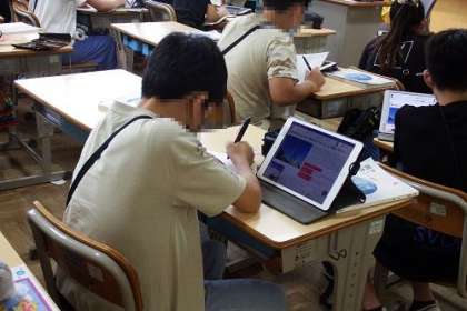 国語「話し合って考えを深めよう」の学習の様子です。課題に対して、自分の意見をまとめるために、タブレットを使って資料を見つけます。相手を説得できる自分の考えを伝えられるでしょうか。
