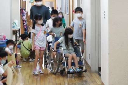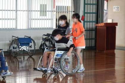 総合的な学習で「やさしさ たんけん」に取り組んでいます。今日は、車いす体験と高齢者体験を行いました。実際に車いすに乗り、高齢者体験グッズを試してみることで、その大変さを実感したようです。
