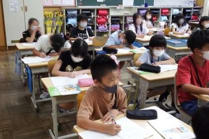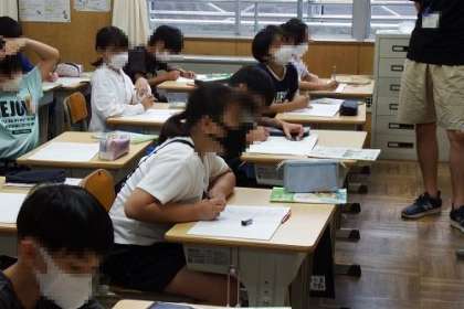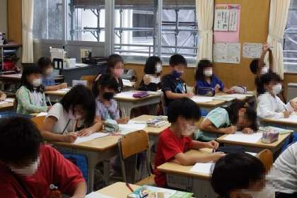算数「あまりのあるわり算」の学習に取り組んでいます。練習問題をたくさんこなして、計算に慣れていきます。あまりのないわり算のときと同じように、わる数の段の九九を使って答えを見つけていきます。