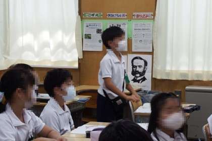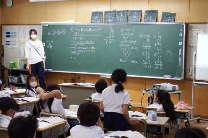 写真は、算数「たし算とひき算のひっ算」の学習の様子です。今日は、3つの数のたし算に取り組みました。位をそろえて書き、繰り上げがあるときは気をつけましょう。