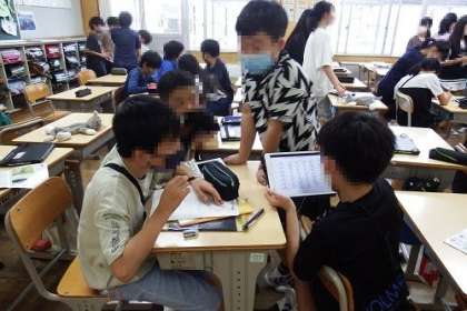 6年生は修学旅行の計画を立てています。今日は、京都でタクシーを使っての班別学習の計画を話し合いました。タブレットで目的地を調べながら、修学旅行への興味が高まります。
