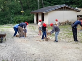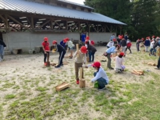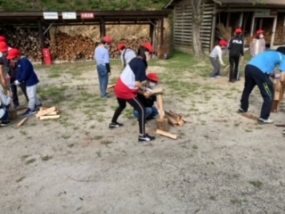 ただ今、薪割り中。仲間で協力しながら作業が進みます。