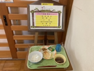 朝食をとります。どんぐり食堂の今朝のメニューは。