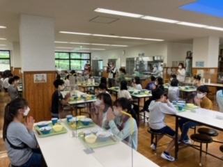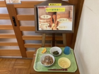 アスレチックで、お腹をいっぱい空かせた後、昼食は、どんぐり食堂で食べました。野外センター館内での食事は、これで最後です。