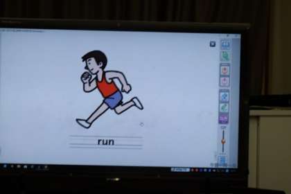 英語の時間には、聞き取りのトレーニングをよく行います。この日は、動きを表す言葉の聞き取りゲームを行いました。楽しみながら、耳を鍛えていきます。