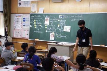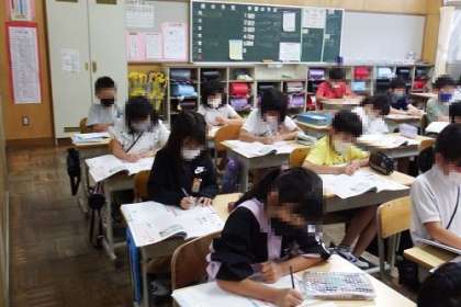 資料「お母さんのふふふ」を使って、道徳の学習を行いました。資料は、友達のいいところ見つけをクラスで発表した主人公について、お母さんが「みきにもいいところがあったわね。ふふふ」と微笑むお話です。長所を伸ばすことの大切さを話し合いました。