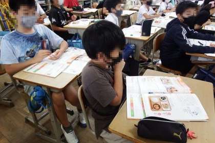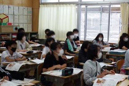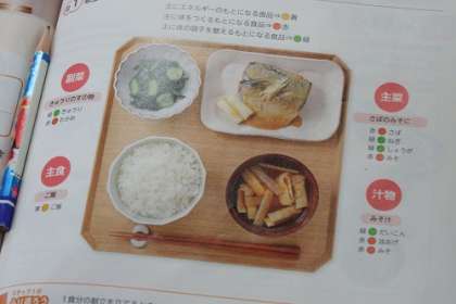 家庭科で、1食分の献立を考えます。普段を食べている自分たちの食事を振り返りながら、主菜・副菜・主食・汁物をバランスよくとれるように。
