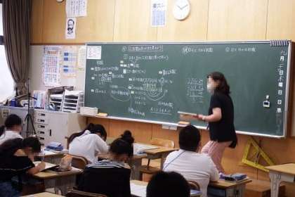 算数「整数」の学習で、公倍数や公約数について考えを深めています。この日は、24と36を使って、2つの数の公約数の見つけ方を学習しました。