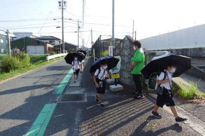 9月30日(金)、育友会の皆様にあいさつ運動を行っていただきました。この日は、傘差し登校最後の日、傘の間から子どもたちの笑顔と元気なあいさつが聞こえました。ありがとうございました。