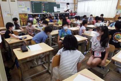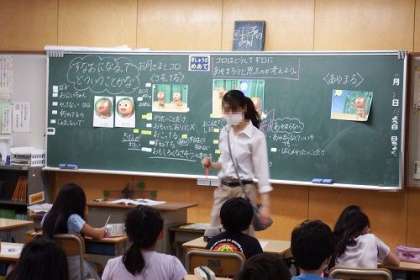 資料「お月さまとコロ」を使い、正直や誠実を目標に道徳の授業を行いました。コオロギのコロの友達はギロだけです。ある日、コロはギロを怒らせてしまいました。その夜、お月さまが出てきてコロに言いました。お月さまの言葉を聞いてコロは・・・。