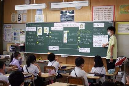 家族の幸せを求めて進んで役に立つことをすることを目標に、道徳の学習に取り組みました。資料は、「家族のために」です。家族のために朝食づくりや洗濯物を干す母や父の姿を見て、アキは行動を起こします。
