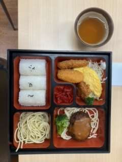 お昼は、ハンバーグの入ったお弁当です。美味しくいただきました。