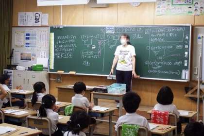算数「図をつかって考えよう」の考え方を発展させ、「しきと計算」の学習に取り組みました。この日は、( )を使った式を学習しました。まとめてたすときは、( )を使って表します。