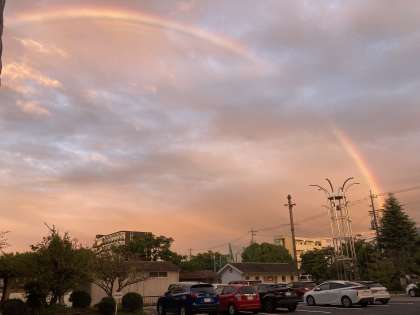 写真は、先週雨上がりに美山の塔の上から校舎にかけてかかった虹の様子です。あまりにもきれいだったので写真に残しました。子どもたちの夢や希望が叶うような気がして。