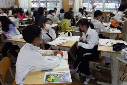 国語「和の文化を受けつぐ」の学習を行っています。これから「和の文化」について調べ、報告をパンフレットにまとめる活動を進めていきます。この日は、文章の構成について考えました。