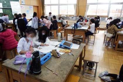 図工で取り組んでいる読書感想画「ナイチンゲールの歌」。この日は下書きを描きました。心に残っている場面をもとに、画面をどう構成するか、考えながら描き上げました。
